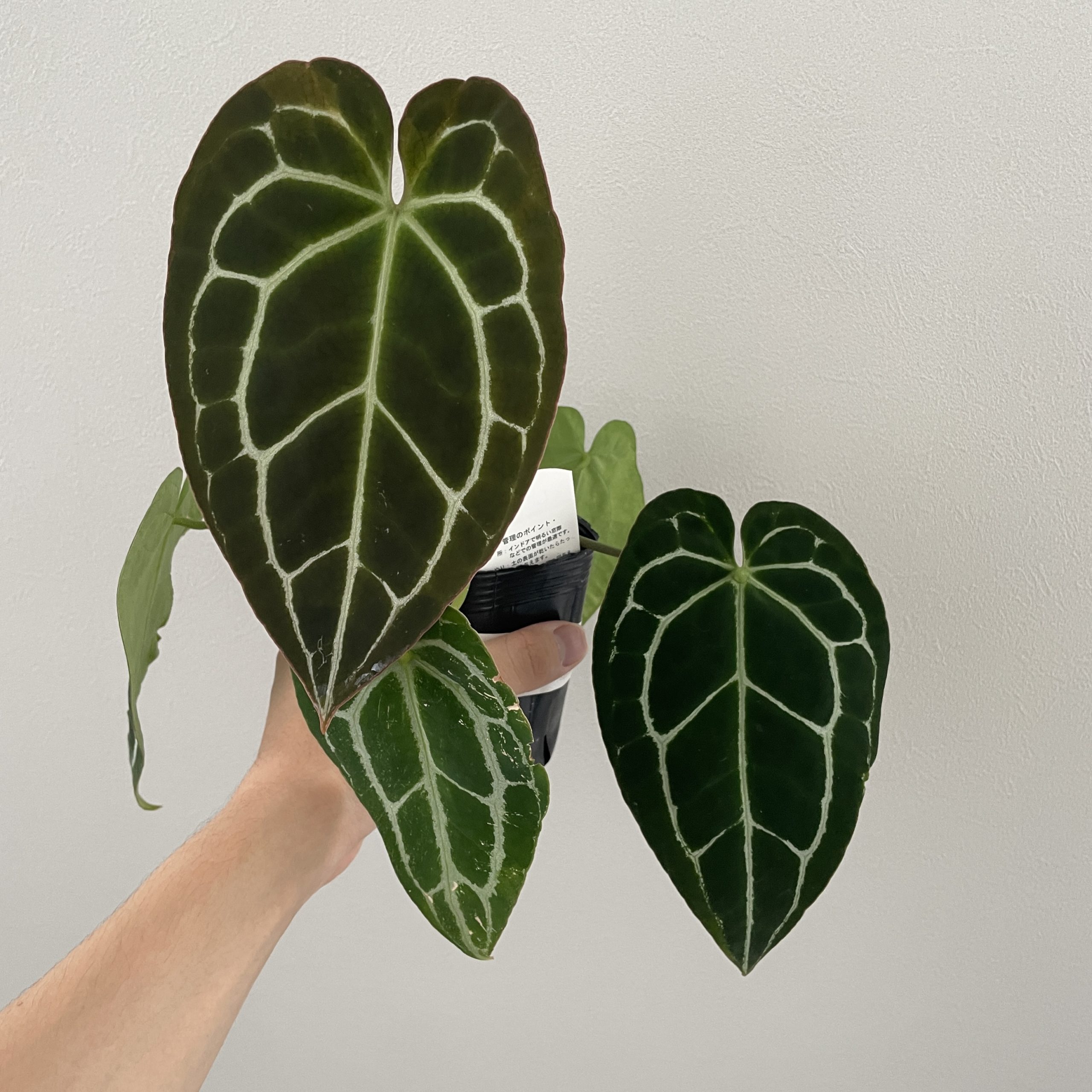 原産地は南米コロンビアやペルーの熱帯雨林。湿度が高く、木陰に近い環境で自生しています。葉は最大で30〜40cmほどにも育ち、長く楽しめる丈夫さを兼ね備えています。アンスリウム属の中でも特に葉の美しさに特化した品種です。