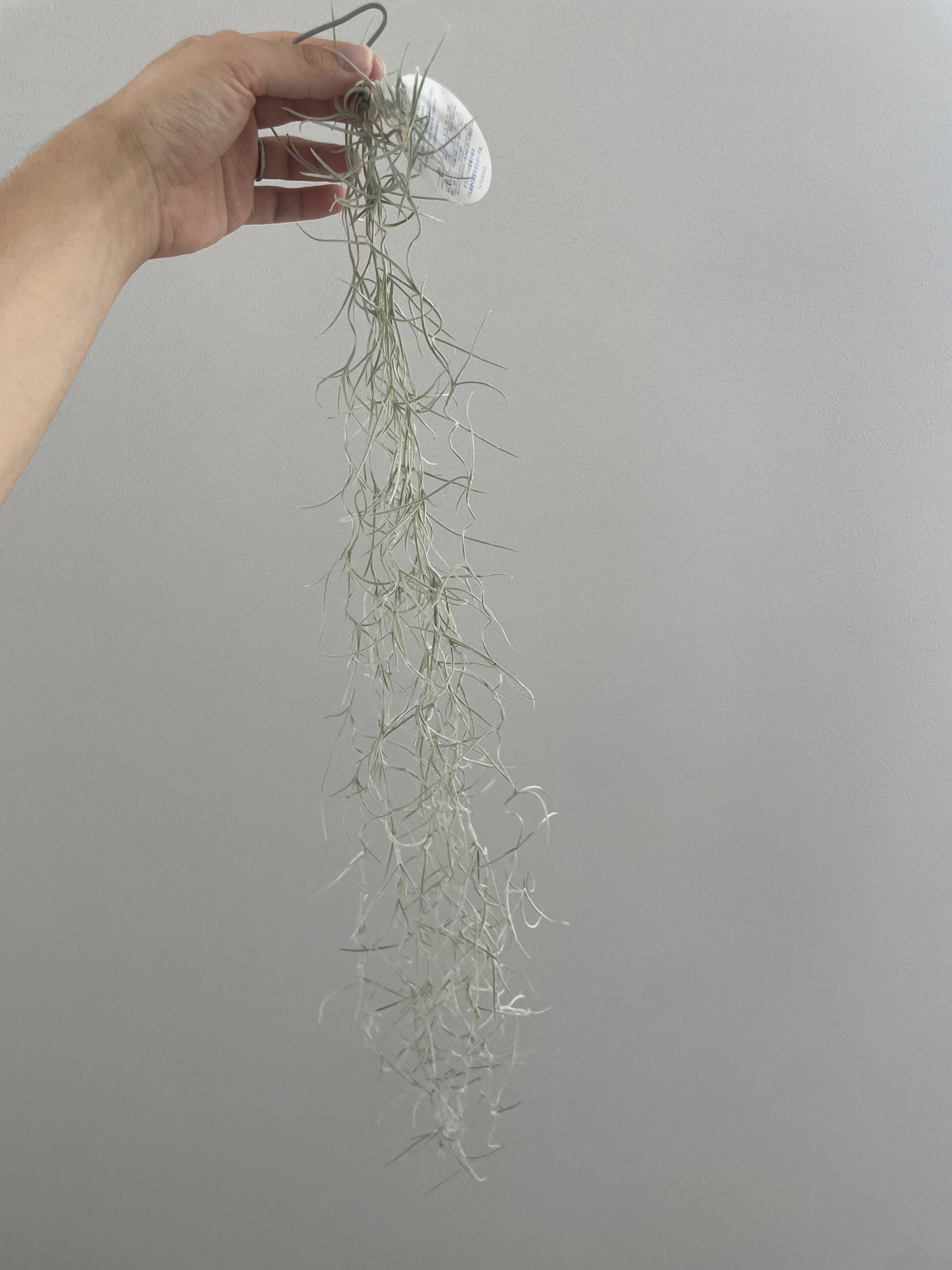 細長い銀葉が連なって垂れ下がる姿から「スパニッシュモス(Spanish Moss)」とも呼ばれ、空気中の水分を吸収して生長するエアプランツの一種です。